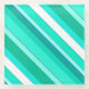 Aspecto 3-d, rayas diagonales en múltiples tonalidades turquesa / pavo real y aqua con estacas de vidrio blanco