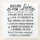 Esta encantadora posavasos "Receta para el Amor" es un hermoso recuerdo y un considerado regalo para despedida de soltera que celebra los ingredientes clave para una feliz matrimonio. Con una elegantemente diseñada "Receta para una Feliz Matrimonio" impresa en ella, esta posavasos combina calidez, sabiduría y un toque de humor para inspirar a las parejas durante años.