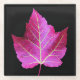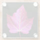 Glass beverage coaster for your drinks and that features the photographic image of a red, autumn colored Maple leaf contrasted against a black background. A colorful, botanical image!