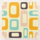 Retro geometric pattern with overlapping rectangles and ovals in orange, teal, pink, and brown on a light beige background, creating a playful, vibrant mood.