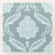 A vintage style decorative damask surface pattern influenced by rococo classical design in duck egg blue color detail on a teal background.