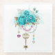 Llave de oro antiguo con rosas turquesa de moda decorados con hojas de oro blanco y cuentas rosas y azules. Color de moda. Rosas turquesas. Oro blanco. Tifanía azul.