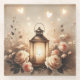 A softly glowing lantern becomes the heart of a romantic cottagecore scene, surrounded by blush roses, airy wildflowers, and floating heart lights that feel dreamy and hopeful. Warm amber tones blend into a misty backdrop, giving the artwork a gentle vintage glow. The composition feels serene, sentimental, and lovingly handcrafted, perfect for anyone drawn to whimsical florals and quiet, luminous beauty. AI generated artwork.