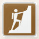 Señal de escalada en roca como la que ve a lo largo de la carretera o en los Parques Nacionales. Silueta blanca de escalada y roca sobre fondo marrón.