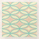 A seamless geometric pattern with overlapping teal circles forming diamond shapes against a peach and cream background, evoking a retro, calming vibe.