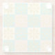 A seamless pattern with geometric floral motifs in yellow, pink, and teal on pastel squares, creating a vintage, harmonious, and cheerful design.
