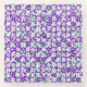 Small floral pattern mint and purple glass drinks coaster featuring, small pattern white and green flowers on a purple background.