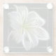 Beautiful glass coasters with fractal artwork of a single white lily framed in silver.