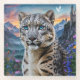 Leopardo de la nieve en flores silvestres en un valle rodeado de Montañas arte de IA por minx267