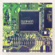Fotografía detallada de una placa de circuito impreso, perfecta para los entusiastas de la electrónica. Color principal del circuito impreso: verde... Huevo de Pascua : busca la linda forma del corazón en el circuito.