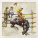 Newell Convers Wyeth fue uno de los primeros ilustradores occidentales de los Estados Unidos. Sus primeros viajes a la frontera inspiraron la imagen del ‘oeste salvaje’. Esta pintura se llama "El burlón Bronco" y muestra a un vaquero montando un caballo en un corral occidental con dos vaqueros mirando.
