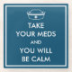Una parodia del popular tema "MANTENER CALMA Y SEGUIR". Una gorra de enfermera reemplaza a la corona familiar acompañada de texto que dice: "TOME SUS MEDIOS Y USTED SERÁ TRANQUILO". Haz lo que la amable enfermera te dice que hagas.