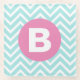 Posavasos De Vidrio Trendy Light Blue Chevron Pink Monogram