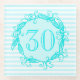 Este hermoso, trigésimo producto del cumpleaños de las mujeres tiene un azul de la aguamarina, swirly marco con las hojas y vides en un fondo rayado azul y blanco.