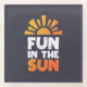 Posavasos De Vidrio Un cartel que dice diversión al sol