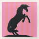 Criar unicornio en silueta sobre un simple fondo rayado rosa y naranja. El regalo perfecto para tu amante del unicornio. Diseñado por Robin Cox.