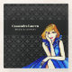 Diseñado en base a mi ilustración de una hermosa dama de pelo rubio que lleva un impresionante vestido de cóctel azul real oscuro clásico y elegante con un patrón de damasco negro y gris en el fondo. El diseño tiene textos personalizables en el lado derecho. Personalízalo en mi tienda para un diseño personalizado para tu negocio o uso personal.