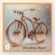 Una bicicleta vintage con un toque dorado, que encarna libertad y nostalgia. Su marco y ruedas de flujo sugieren un movimiento sin esfuerzo, montado sobre un telón de fondo suave y texturado que evoca la alegría de un viaje tranquilo. "Imagen original generada por Meta AI. La IA generó obras de arte. Con licencia CC BY-SA 4.0."