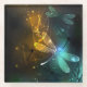 Posavasos De Vidrio Vuelo de libélula luminosa verde