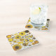 This glass coaster is wild with all the different splatter on it some are circles while there some splatter too, the design is digital created on a computer. There is yellow and black with a touch of orange included.