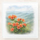 This coaster features a refined illustration of wild azaleas blooming against layers of misty mountain ranges. The vivid orange flowers bring warmth and life, while the soft, atmospheric background creates a calm and elegant impression.