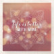 Añade algo de encanto a tu próxima reunión con esta divertida y hermosa montaña rusa. El texto dice "La vida es mejor con el vino" en un moderno emparejamiento de tipografía, pero puedes personalizar si quieres incluir una frase, nombre o evento diferente. El fondo incluye una mandala en forma de estrella sobre un fondo de color rosa y melocotón.