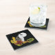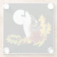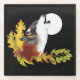 Un lobo aullando en una luna llena con hojas de otoño y bellotas en un fondo de negro.