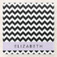 Posavasos De Vidrio Zigzag negro y blanco, patrón de cheurón, nombre