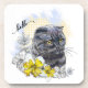 Posavasos Dibujo manual gracioso gato negro británico con fl
