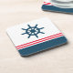 Diseño náutico con rueda de vela y decoración de rayas sobre fondo blanco