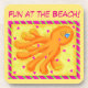 Diviértete en esta playa con este naranja colorido y amarillo para recordarte a la playa. Este arte es genial para niños y adultos con un estilo artístico llamativo. El pulpo blanco es naranja y tiene un fondo de textura amarilla y está rodeado de chozas rosadas calientes. El diseño está enmarcado por una fucsia rosa caliente y un borde de rayas verde lima. Esto hace un gran regalo y es ideal para una casa en la playa. Se ha creado con el arte original de Phyllis Dobbs y es vibrante en los colores amarillo, naranja y rosa caliente. Personalizable completo para su disfrute.