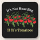 Los tomates son un alimento básico para la mayoría de los jardineros y ninguno de nosotros puede esperar esos jugosos frutos rojos. Diseño gráfico divertido con una hilera de plantas de tomate rodeadas por el texto No es acaparador si son tomates.
