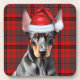 Fun coaster set for the person who loves their Doberman Pinscher. This one wears a Santa hat for a stylish approach to the holiday season, and sits cutely against a red plaid background to decorate your home or office with seasonal pet lover joy.