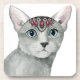 Esta acuarela tiene un gato gris adornado con joyas | Por Grace Popp