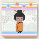 Dulce muñeca kokeshi con un patrón de libélulas en su kimono.