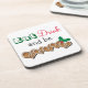 "Eat, drink and be merry" slogan with gingerbread heart shaped cookies and holly decoration on Christmas cork coasters.