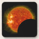 La sombra oscura de la luna se cruza frente al sol durante un eclipse solar capturado en el espacio y mejorado en esta imagen.