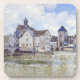 Alfred Sisley. edificios y puentes con agua en primer plano; iglesia izquierda del centro. Paisaje con un río profundo. Hay pequeñas casas y una catedral a orillas del río. Hay dos puentes con arcos a lo largo del río. Pequeñas nubes están atravesando el cielo azul. Reproducción de obras famosas de imágenes artísticas de dominio público.