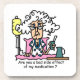 Camisetas de actitud divertida, tazas, tarjetas, bolsas de té, imanes, cadenas de claves, ornamentos, estuches para iPhone, relojes de pared, revistas y más, ¡seguro que te hará reír! Stella, una chica con actitud, pregunta "¿Es usted un mal efecto secundario de mi medicación?"