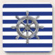 Un cromo de plata como diseño de la rueda en una decoración de las rayas de azules marinos. Un regalo náutico moderno.