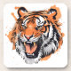 "El retrato del tigre ruidoso". El ilustracion muestra un tigre encarnizado y encarnizado con colores naranja, negro y blanco vivos. El fondo tiene un efecto salpicado artístico que realza el ambiente dramático de las obras de arte.