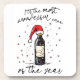 Un divertido y alegre diseño de Navidades exhibe una botella de vino envuelta en luces de Navidades festivos y coronada con un sombrero de Santa. El texto escrito a mano dice alegremente, "Es el vino más maravilloso del año". Este diseño se ofrece en una variedad de productos.
