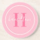 Posavasos Elegant Light Pink Round Custom Monogram Initial