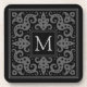 Black and gray or custom color coaster featuring your monogram initial inside an ornate floral border.
