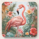 Posavasos Elegante pájaro rosa flamenco y flores tropicales