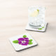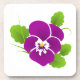 Elegante Pansy púrpura con hojas verdes sobre un fondo blanco.