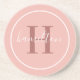 Posavasos Elegante Personalizado redondo rosado Monograma in