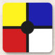 Elegante plaza abstracta negra, azul, amarilla, roja y blanca. ¡Colores básicos!