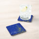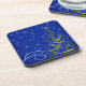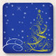 Hermosa escena azul del árbol de Navidad desatada por copos de nieve. Un regalo de invierno perfecto.