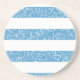 La moda y la diversión Sparkle Purpurina Look Stripes Coaster. Este diseño presenta un patrón brillante de rayas purpurinas en azul. Añadir texto a este diseño para darle un toque personal.
